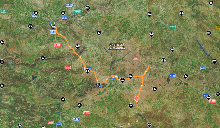 - Servicios en ruta: agua, combustible y supermercados en Consuegra, Alcázar, Criptana, Tomelloso