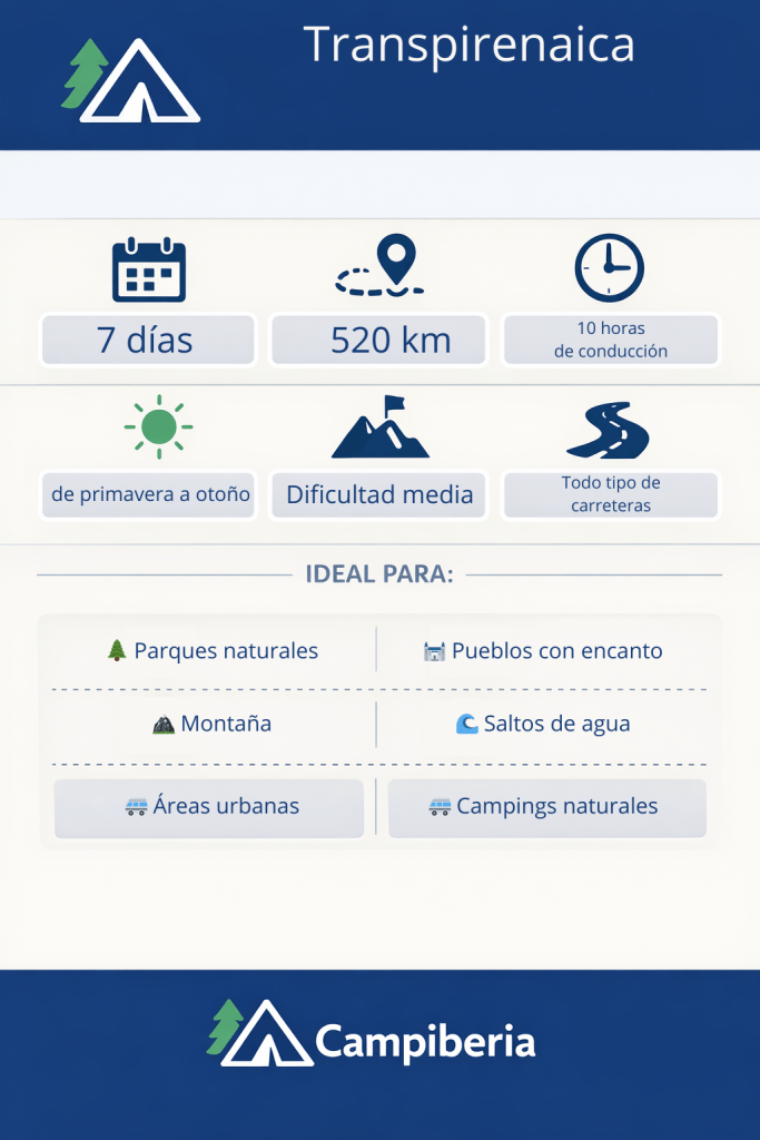 Es una ruta lineal, bien adaptada a cualquier tipo de camper o autocaravana, con conducción tranquila, buenas carreteras y pernoctas reguladas.